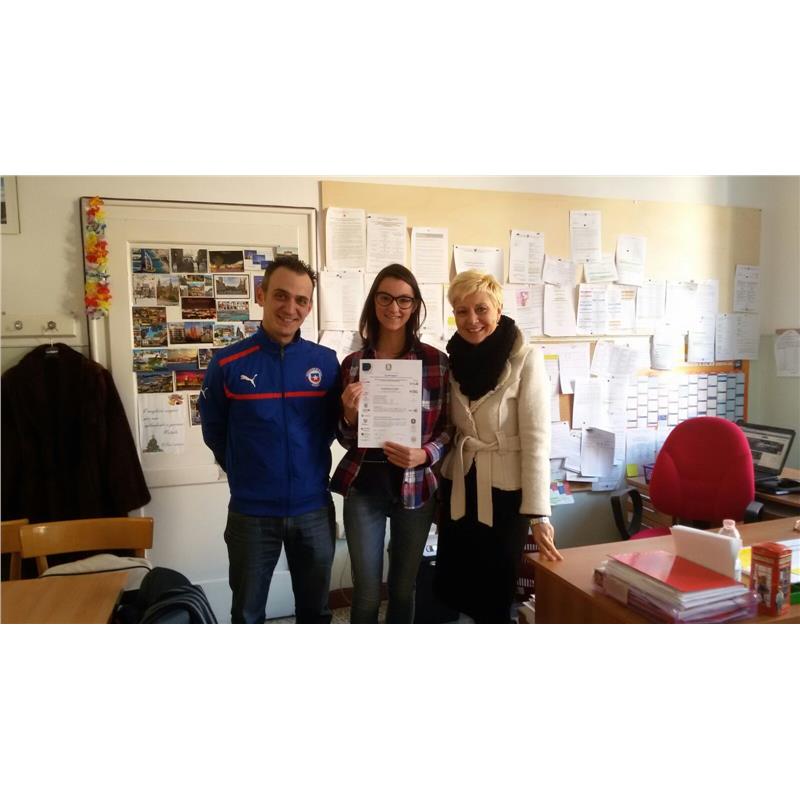 Valentina De Pinto, Andreas Kuhnle, Gessica Defrancesco e Melanie Paro hanno ottenuto la suddetta certificazione e vanno ad aggiungersi agli studenti del liceo che dall’anno scolastico 2012/2013 hanno aggiunto al Diploma di maturità la certificazione certilingua ®.