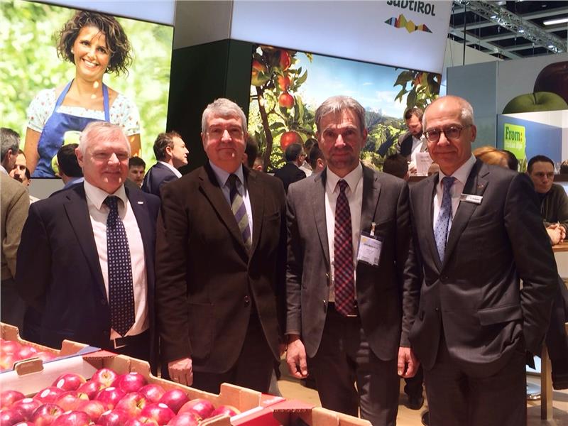 Assieme all'assessore Schuler alla "Fruit Logistica" a Berlino c'erano anche rappresentanti dei produttori ortofrutticoli altoaesini.