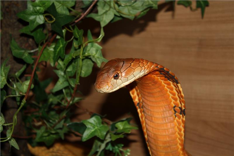 In 35 terrari che riproducono dei biotopi naturali, la mostra espone 80 esemplari di serpenti di 34 specie diverse con differenti dimensioni, colori, abitudini e pericolosità. Una selezione mirata delle circa 3.400 specie che vivono in tutti i continenti, ad esclusione dei poli. Spicca tra esse il taipan, il serpente più velenoso che si conosca: originario dell’Australia e della Nuova Guinea, il taipan arriva a tre metri e mezzo di lunghezza e vive cacciando roditori e volatili. Ma alla mostra troviamo anche il cobra reale, che con i suoi cinque metri e mezzo è il serpente velenoso più lungo del mondo. Altro pezzo forte dell’esposizione è il mamba nero, considerato il re dei serpenti africani: sfiora i 4 metri e mezzo, si muove con una velocità che può raggiungere i 20 km/h e nella stagione degli amori è particolarmente aggressivo.