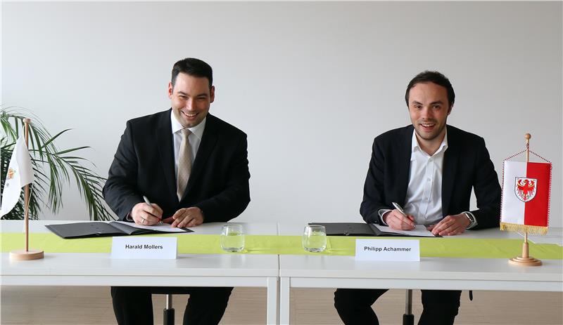 L’assessore provinciale Philipp Achammer e Harald Mollers, Ministro all’istruzione e ricerca scientifica della minoranza germanofona del Belgio, hanno siglato oggi (15 marzo) a Bolzano un accordo di collaborazione e di scambi regolari nel settore della formazione.
