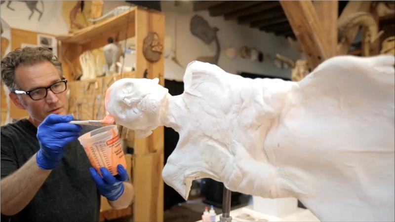 La scultura sia stata realizzata nel corso di un processo a più fasi e lavorata dal noto paleo-artista statunitense Gary Staab.