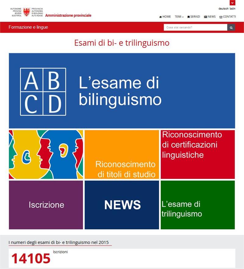 Il processo di aggiornamento e modernizzazione della presenza sul web della Provincia di Bolzano, coordinato dal punto di vista tecnico da Informatica Alto Adige, prosegue con la messa online di due nuove pagine: si tratta di quella dedicata all'integrazione e di quella dedicata al bilinguismo. Quest'ultima, in maniera particolare, rappresenta uno dei siti più ricercati dagli utenti: circa 15mila persone, infatti, si iscrivono ogni anno agli esami di bi- e trilinguismo, e da oggi avranno accesso alle infomazioni in maniera più semplice, rapida e compatta. Le nuove pagine si possono trovare online a questi indirizzi: www.provincia.bz.it/bilinguismo e www.provincia.bz.it/integrazione.