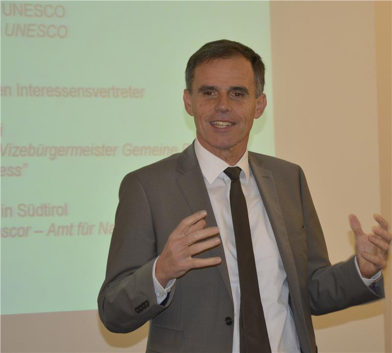Piero Gianolla dell'Università di Ferrara, consulente della Fondazione Dolomiti UNESCO, ha parlato del significato e degli effetti del riconscimento mondiale, Umberto Martini dell'Università di Trento ha approfondito il management delle destinazioni delle località dolomitiche, che deve coincidere con le linee guida dell'UNESCO. La direttrice della Fondazione, Marcella Morandini, si è soffermata sulle strategie di gestione e turistiche del bene mondiale, approvate nel 2015, che rappresentano la base per lo sviluppo futuro dell'area. "Contengono divese proposte di valorizzazione e miglioramento che possono essere attuate solo assieme a tutti gli interessati, non ultimi i Comuni", ha detto Morandini.