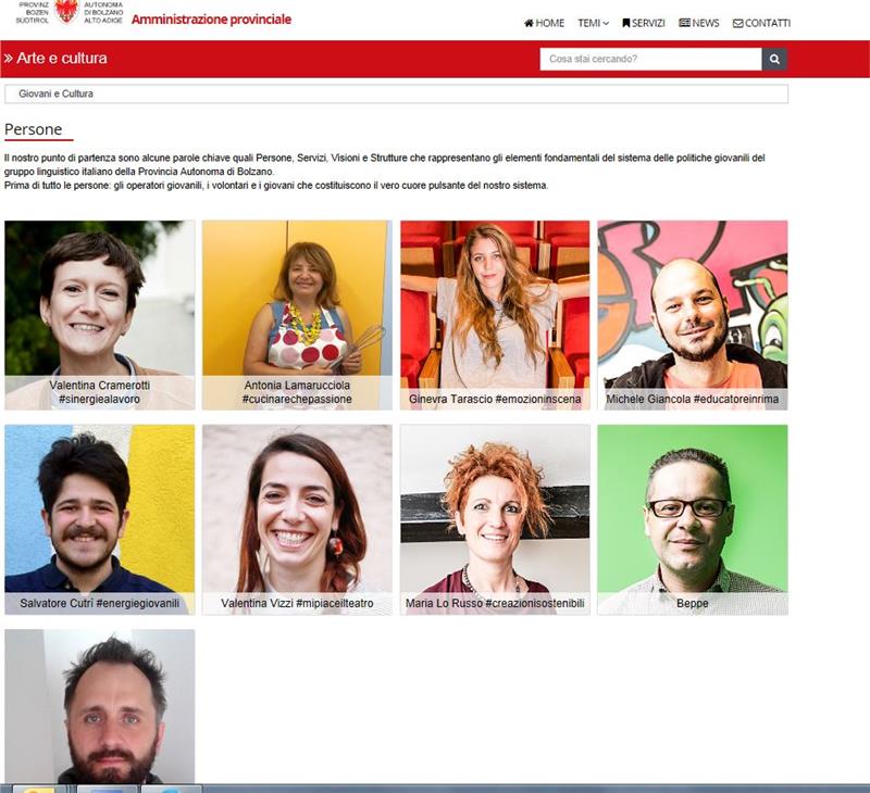 La nuova campagna del Servizio Giovani per raccontare le politiche giovanili attraverso i suoi protagonisti, denominata #talkingpeople, si struttura in “video pillole”, interviste e fotografie che raccontano le storie di tutte quelle persone che gravitano nell’orbita del Servizio Giovani e il cui contributo è decisivo per gli interventi della Provincia in favore dei giovani. Incentrata sulle persone e sulle loro voci, la campagna questa settimana presenta Valentina Cramerotti della Cooperativa19 che lavora al progetto Weigh Station. Si potrà conoscere cliccando il link alla pagina pagina web del Servizio Giovani, sezione persone: http://www.provincia.bz.it/arte-cultura/giovani/persone.asp e vedere e ascoltare scegliendo il link http://www.provincia.bz.it/arte-cultura/giovani/schede-persone.asp?pers_action=4&pers_article_id=560967