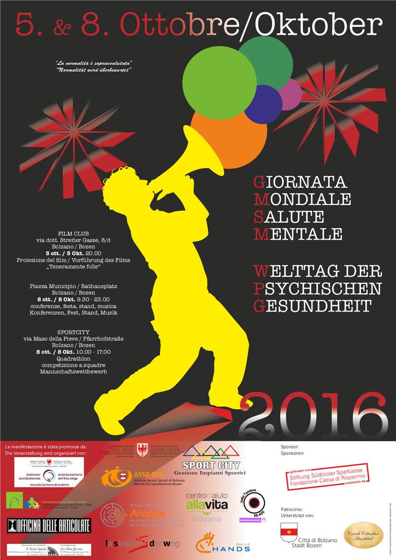 Per quanto riguarda le manifestazioni organizzate a livello provinciale in occasione della Giornata mondiale della salute mentale che si celebra lunedì 10 ottobre, rimandiamo al programma allegato.