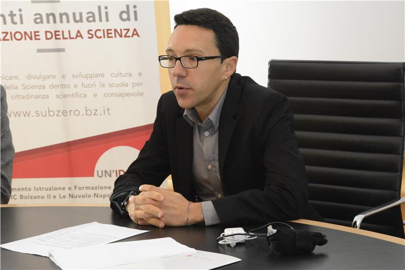 L’ispettore per l’ambito scientifico matematico, Mauro Valer, ha quindi illustrato nel dettaglio il programma della manifestazione che dal 17 al 19 ottobre coinvolgerà numerose scolaresche e docenti. “suBZero, Storie di Scienza” sarà inaugurata lunedì 17 ottobre da un incontro con Federico Benuzzi all’Eurac intitolato “Fisica sognante”.