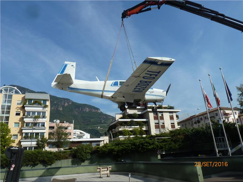 Dopo le necessarie verifiche tecniche, e aver richiesto l’autorizzazione urbanistica in Comune, si è studiata la migliore soluzione statica approntandone i necessari interventi. Insieme alla scuola è stata individuata l’ubicazione che potesse rappresentare al meglio il velivolo, che gli stessi studenti coordinati dagli assisstenti tecnici dell'istituto e in particolare dal professore Thomas Seebacher (direttore di progetto), hanno provveduto a smontare senza danneggiare le sue parti.