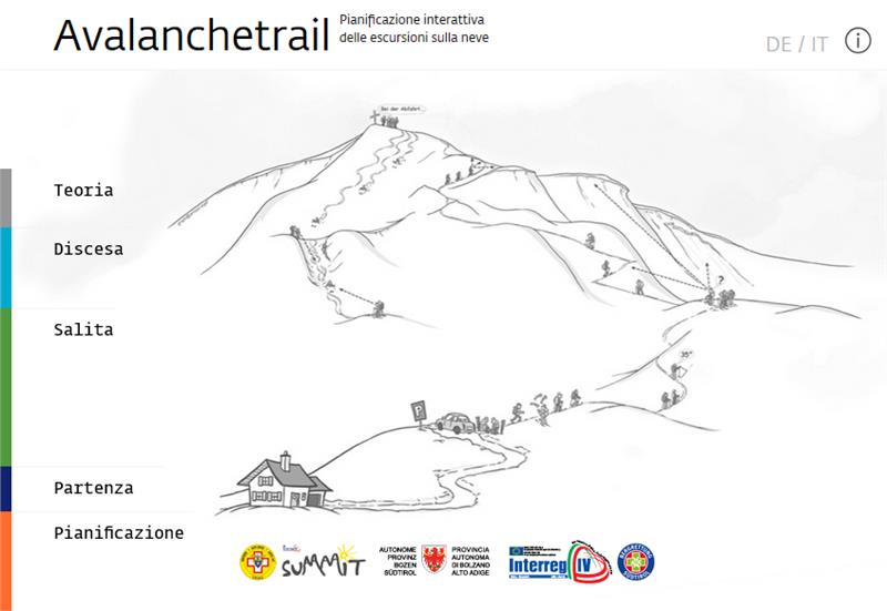 Questo percorso didattico interattivo, utilizzabile da tutti gli appassionati anche come strumento di apprendimento per corsi di formazione, si avvale in maniera dinamica dei dati dell’ultimo bollettino valanghe, verifica la conformità delle informazioni inserite dall’utente, e propone una serie di nozioni teoriche. avalanchetrail.bz.it nasce nell'ambito del progetto Interreg IV Italia-Austria SUMMIT (Safety for Users of the Mountain Area by Management of Risks and Innovative Technologies). Partner del progetto, co-finanziato dal Fondo europeo di sviluppo regionale (FESR), sono l'Agenzia per la protezione civile della Provincia di Bolzano, il Cluster protezione civile & sicurezza alpina di IDM Alto Adige, l'Istituto per la medicina d'emergenza in montagna dell'Eurac, il soccorso alpino dell'AVS, l'Istituto di geografia dell'Università di Innsbruck, la Ripartizione protezione civile del Tirolo e il Global Risk Forum di Davos.