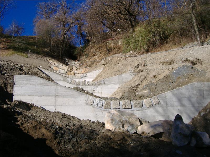 Un successivo tratto del rio è stato sistemato nella parte alta con la realizzazione di dieci briglie, delle quali, tre in massi ciclopici e calcestruzzo, e sette in calcestruzzo.