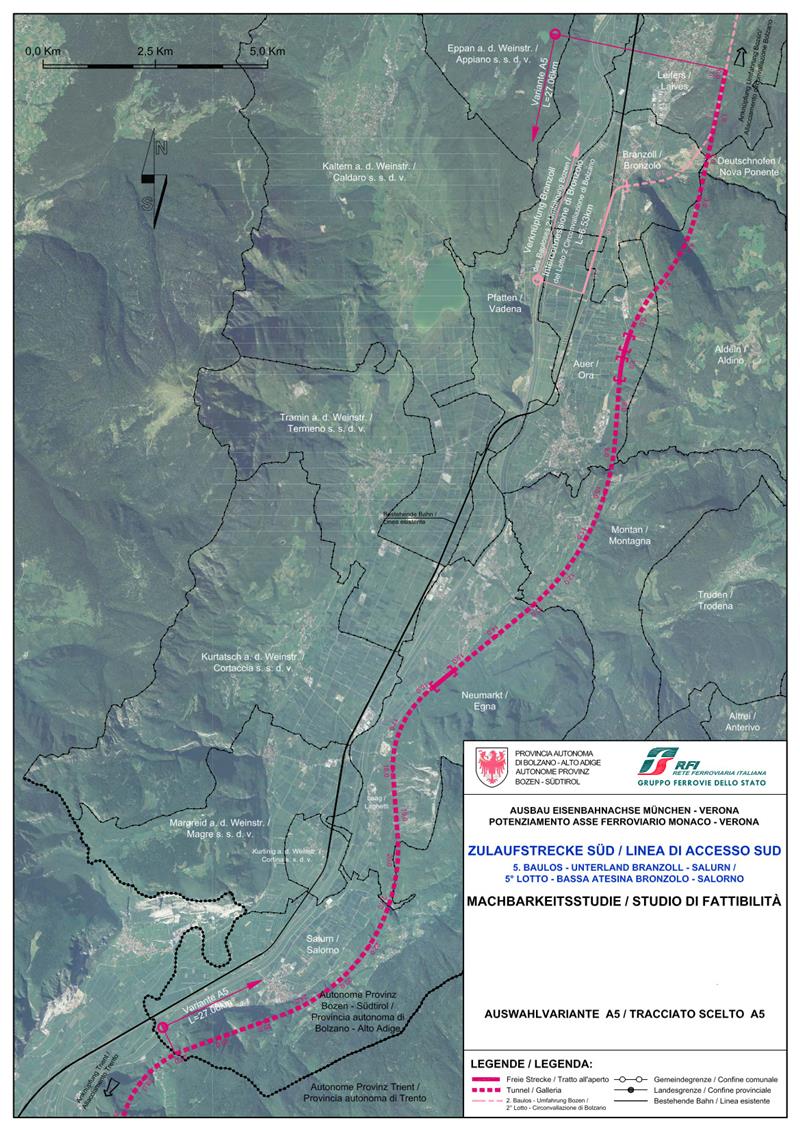 Passo avanti fondamentale verso la progettazione della tratta ferroviaria di accesso al BBT in Bassa Atesina: la Giunta provinciale ha avviato oggi la procedura relativa alla modifica di ufficio del PUC dei Comuni interessati (Laives, Bronzolo, Nova Ponente, Aldino, Ora, Montagna, Egna e Salorno) con l’inserimento della variante in galleria. Questa soluzione sarà la base per le prossime fasi di progettazione della tratta di accesso. Il tracciato in galleria è risultato il migliore dallo studio di fattibilità che ha confrontato diverse soluzioni sul piano geologico, idrogeologico, geomeccanico e ambientale e che ha tenuto conto anche delle osservazioni di Comunità Comprensoriale Oltradige Bassa Altesina, rappresentanti dei Comuni, gruppi di interesse, gruppo di lavoro VAS (Valutazione ambientale strategica), esperti e cittadini. Secondo quanto prevede la modifica del PUC, il tracciato individuato potrà ora essere ottimizzato intervenendo su un corridoio ampio 750 metri in base agli studi geologici, ambientali e tecnici dettagliati che seguiranno nelle successive fasi del progetto.