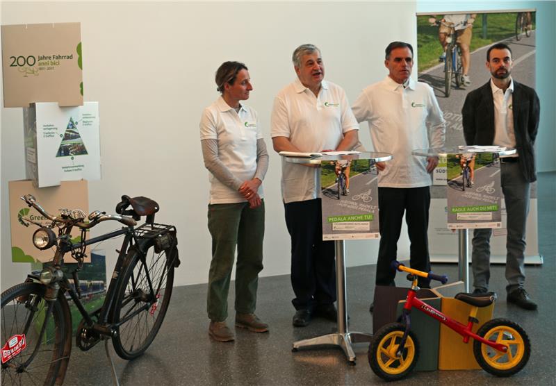 Caratteristiche e novità della quarta edizione del concorso sono state illustrate da Irene Senfter, direttrice dell’Ökoinstitut e Harald Reiterer (Sta), coordinatore di Green mobility. Ricorrendo quest’anno il bicentenario della nascita della bicicletta, inventata nel 1817, la durata del concorso è stata estesa, appunto, a 200 giorni. “Il cicloconcorso è rivolto soprattutto a coloro che usano la bici come mezzo di trasporto per gli spostamenti quotidiani – ha detto Reiterer - e quindi sono invitati a partecipare tutti, indipendentemente dalle proprie capacità sportive”. “Basta registrarsi sul rinnovato sito www.altoadigepedala.bz.it o sulla App e pedalare almeno 100 km durante il periodo del concorso e si potranno vincere i premi in palio”, ha aggiunto Senfter . Vengono premiati, fra gli altri, il ciclista più giovane, quello più anziano, quello con più chilometri percorsi, il Comune con la più alta percentuale di partecipanti o l’azienda con il più alto numero di chilometri percorsi dai dipendenti. Per queste ultime due categorie l’anno scorso sono stati premiati rispettivamente il Comune di Brunico - rappresentato in conferenza stampa da Sonja Hartner e Albert Steinwandter - e l’Asm di Bressanone, rappresentata da Walter Richter.