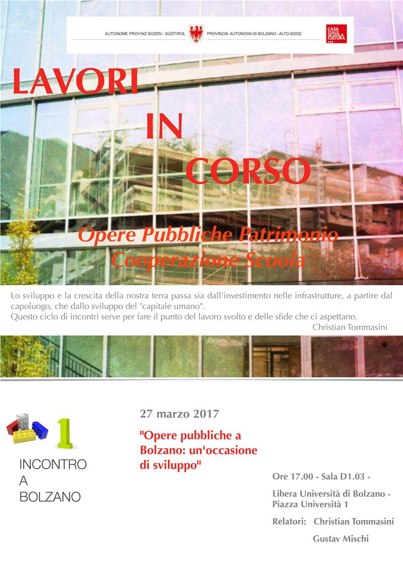 Tema del primo appuntamento “Opere pubbliche a Bolzano: un’occasione di sviluppo”