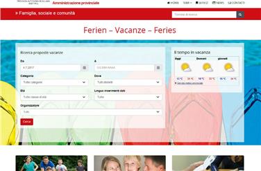 All'indirizzo www.provincia.bz.it/vacanze gli utenti del web possono trovare il nuovo portale delle vacanze della Provincia. Dai tour in bicicletta ai corsi di pittura o di lingua, per arrivare ai viaggi di un giorno nelle città, sulla pagina si possono trovare tutte le proposte estive pensate per bambini e ragazzi. Il pezzo forte del portale completamente rinnovato è la banca dati molto aggiornata nella quale è possibile effettuare ricerche in base alla data, alle classi di età dei bambini, al tipo di proposta e all'ente organizzatore. "Il nuovo sito offre la possibilità di vedere velocemente tutte le proposte per l'assistenza estiva che viene svolta con il concorso finanziario della Provincia, ed è un valido aiuto per le famiglie", sottolinea l'assessora all'informatica Waltraud Deeg.