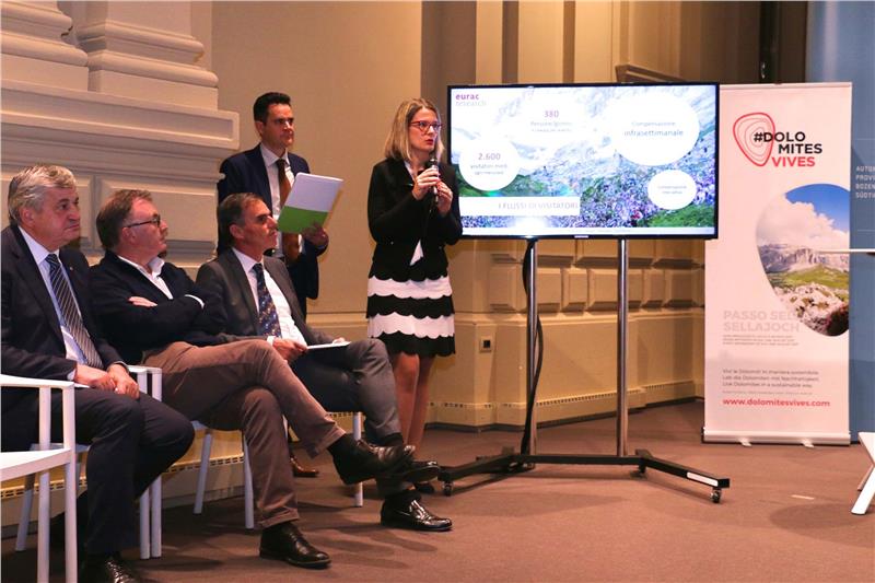 Il primo test congiunto e transfrontaliero di limitazione del traffico per un’esperienza delle Dolomiti all’insegna della sostenibilità ha dato esiti positivi. Lo dimostrano i risultati del monitoraggio condotto da Eurac research su incarico delle Province di Bolzano e di Trento tramite IDM Alto Adige e Trentino Marketing. Con il progetto #dolomitesvives ha preso il via una nuova era per i passi ladini. Ogni mercoledì di luglio e agosto la strada di passo Sella è stata chiusa ai veicoli a motore, e la circolazione era consentita solo ai mezzi a trazione elettrica, alle biciclette e ai pedoni nonché agli autobus del servizio pubblico. Grazie a un programma con eventi culturali e culinari è stata promossa la mobilità sostenibile e suggerito un nuovo modo di vivere le Dolomiti con tutti i sensi. Per verificare come la chiusura del passo abbia inciso su turismo, quotidianità dei residenti e attività economiche è stato svolto un monitoraggio con questionari qualitativi (440 questionari distribuiti a turisti e una trentina di video-interviste a imprenditori, popolazione locale e ospiti durante le giornate dell’azione), mentre l’Agenzia provinciale per l’ambiente ha eseguito un controllo dettagliato dei valori relativi al rumore. Gli assessori altoatesini Florian Mussner, Richard Theiner, il trentino Mauro Gilmozzi, assieme a Gerhard Vanzi e Anna Scuttari di Eurac research hanno presentato nel tardo pomeriggio di oggi (24 ottobre) gli esiti del monitoraggio.