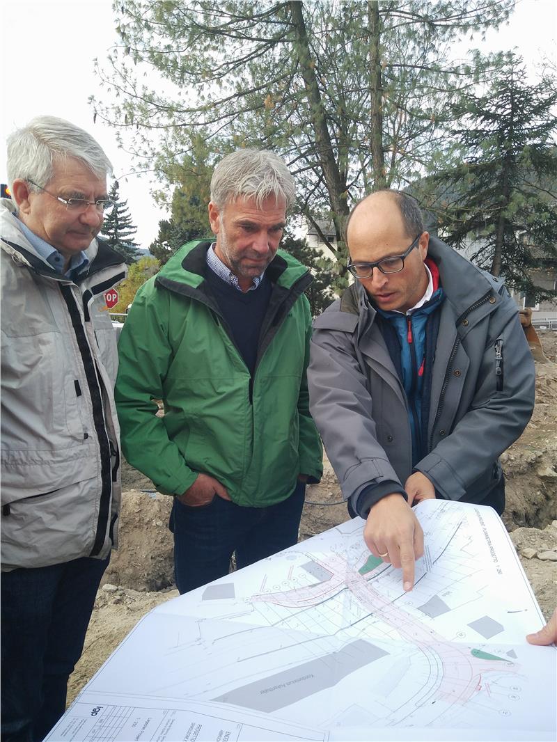 Sopralluoghi nei cantieri dei bacini montani in alta val d'Isarco dell'assessore provinciale Schuler e del direttore dell'Agenzia protezione civile Pollinger.