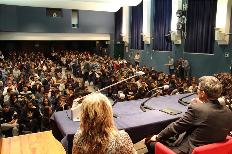 Kompatscher è stato invitato al Battisti in occasione degli 80 anni della scuola e si è confrontato con 350 ragazzi.