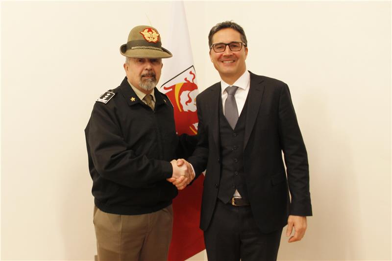 Ultimi giorni da comandante delle truppe alpine per il generale Federico Bonato, che questa mattina(2 febbraio) è stato ricevuto a Palazzo Widmann dal presidente Arno Kompatscher. Nel corso del colloquio, Kompatscher ha ringraziato Bonato per l'ottima collaborazione avuta in questi 3 anni e mezzo, sottolineando l'ottimo funzionamento della partnership fra la Provincia di Bolzano e gli alpini in diversi settori. "Penso principalmente alla Protezione civile - ha spiegato il Landeshauptmann - dove vi è una forte e costruttiva sinergia fra tutte le strutture che operano sul territorio. La dimostrazione di quanto efficiente sia la macchina organizzativa nei casi di emergenza la si è avuta anche di recente in occasione degli interventi legati alle valanghe in Alta Val Venosta".