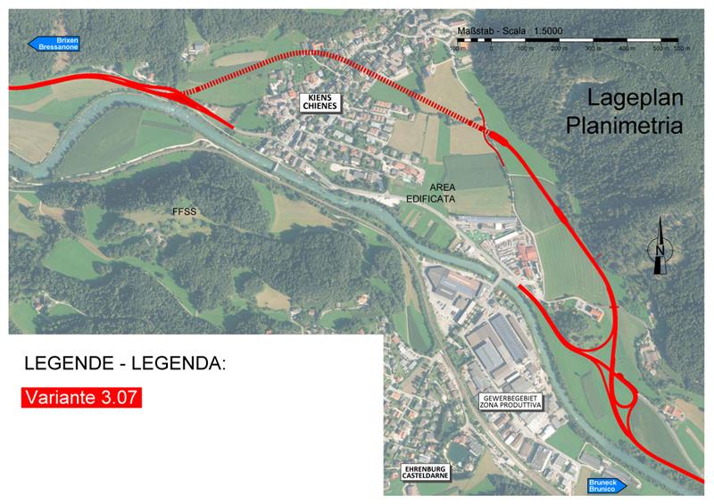 La costruzione della circonvallazione di Chienes si avvicina alla realizzazione. La Giunta provinciale ha approvato oggi (27 febbraio) il progetto definitivo, che prevede un tracciato in linea con quanto inserito di recente nel piano urbanistico comunale, ovvero con la variante nord in galleria, soluzione considerata più rispettosa dell’ambiente. "Nell’esprimere l’ok alla nuova opera viaria - ha riferito il presidente della Provincia Arno Kompatscher - la Giunta ha fatto proprie le indicazioni del Comitato ambientale stilate in sede di valutazione del progetto il 30 gennaio scorso. Già entro il 2018 si dovrebbe giungere alla relativa gara d’appalto per avviare quindi la costruzione della circonvallazione". Dal punto di vista dell'iter procedurale, il progetto esecutivo dovrà essere nuovamente sottoposto alla valutazione del Comitato ambientale, il quale ha prescritto che si ponga maggiore attenzione agli aspetti paesaggistici valutando la possibilità di una copertura del tratto di circonvallazione che attraversa la zona di tutela.