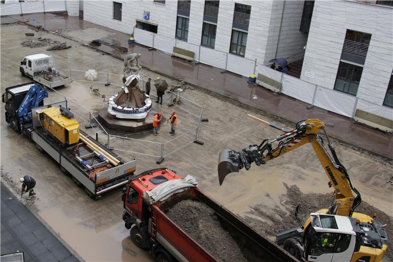 Via Laurino è rimasta chiusa per il tempo necessario allo svolgimento delle operazioni di attraversamento della strada in totale sicurezza. La fontana è stata quindi posizionata su un basamento provvisorio qualche metro all’interno del parco Stazione e verrà protetta con una recinzione. "Dopo lo spostamento – spiega Braito– l’ufficio tutela beni architettonici valuterà il tipo di intervento di restauro a cui dovrà essere sottoposta la statua". Quando saranno terminati i lavori di rifacimento della pavimentazione il manufatto sarà ricollocato in piazza Magnago in posizione più decentrata rispetto a quella attuale.