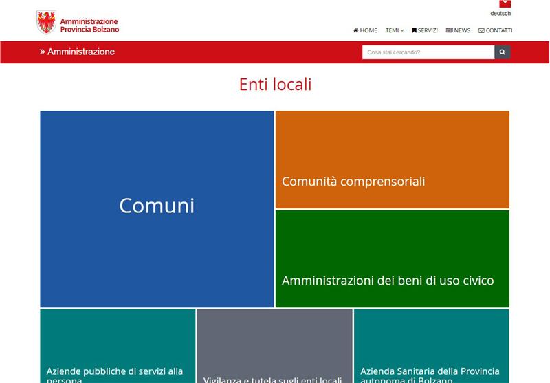 www.provincia.bz.it/enti-locali. Questo l'indirizzo del nuovo portale web della Provincia dedicato al tema degli enti locali online da questa mattina (15 ottobre). Secondo lo Statuto di autonomia, la Giunta provinciale ha compiti di vigilanza su comuni, comunità comprensoriali ed enti locali, e grazie al nuovo portale web, dotato di un potente motore di ricerca interno e strutturato in maniera più chiara, sarà semplice trovare i contenuti di maggiore interesse per i cittadini. Da queste attività di controllo al finanziamento dei comuni, dall'imposta muncipale immobiliare (IMI) alle licenze, passando per revisori dei conti e segretari comunali.