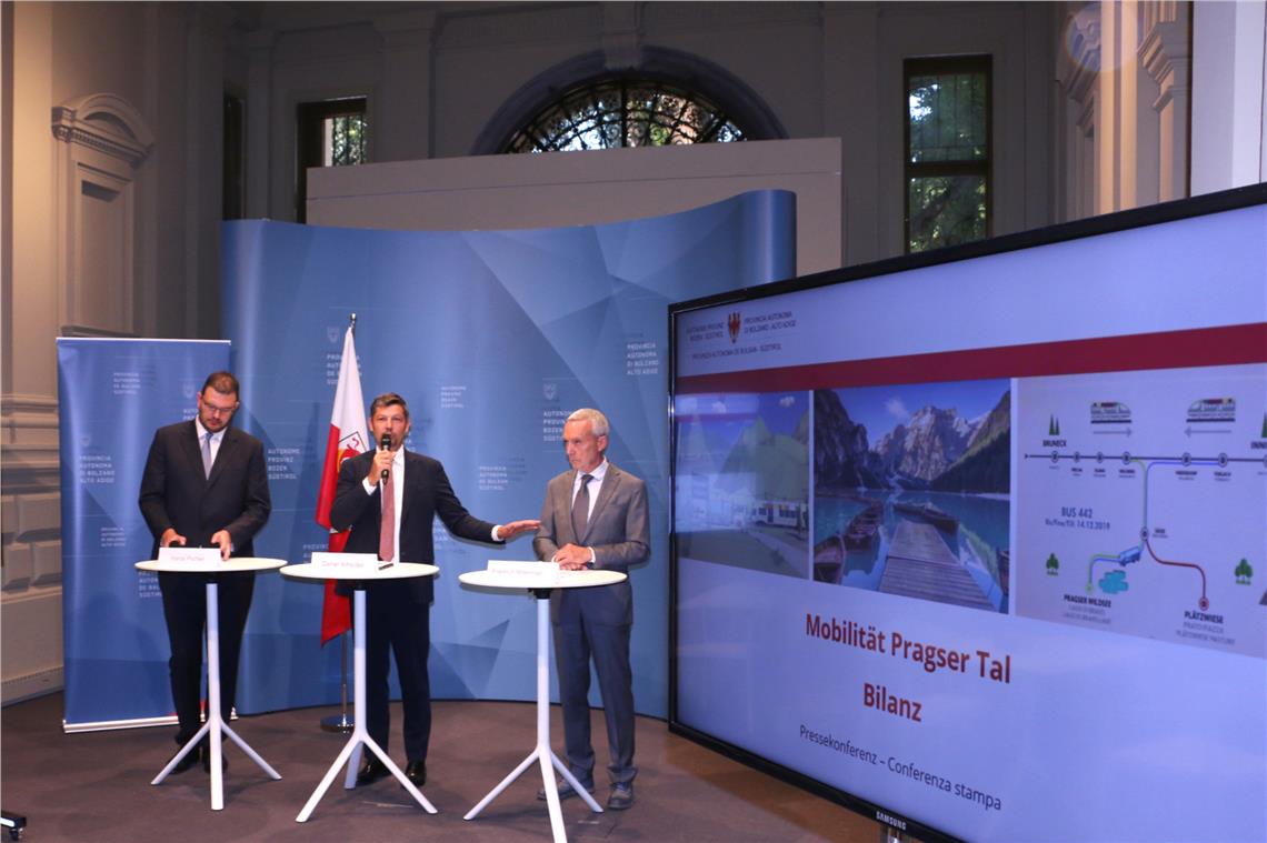 “È stato molto importante il lavoro di comunicazione della chiusura del traffico. In futuro vogliamo giungere ad un migliore equilibrio tra una mobilità ottimale ed i flussi del traffico, anche con interventi già all’inizio della valle. Deve essere inoltre migliorato il sistema dei parcheggi ed a livello locale vi deve essere la possibilità di adottare con maggiore flessibilità dei blocchi del traffico. A questo scopo – ha affermato Daniel Alfreider – sarà anche necessario proporre al Governo modifiche riguardanti il Codice della strada”. Il sindaco di Braies, Friedrich Mittermair, ha quindi sottolineato gli aspetti positivi sulla viabilità della vallata realizzati grazie alle misure adottate dalla Provincia in collaborazione con l’IDM. “Il blocco del traffico veicolare privato ha riscosso un notevole sostegno sia da parte della popolazione locale che degli ospiti. Grazie all’utilizzo dei mezzi pubblici siamo riusciti a portare sino al lago circa 250.000 persone ogni mese, con una notevole riduzione del traffico e dell’inquinamento”. Secondo il sindaco un ulteriore miglioramento potrebbe essere rappresentato dalla creazione di un’apposita stazione ferroviaria per Braies lungo la linea della Val Pusteria e dal perfezionamento delle prenotazioni. Il presidente dell’IDM, Hansi Pichler, ha quindi illustrato l’ampio pacchetto di misure poste in atto nel corso dell’estate nel campo della comunicazione per informare adeguatamente sia i turisti che la popolazione residente delle restrizioni del traffico veicolare privato diretto verso il lago di Braies. La campagna ha ottenuto un ampio rilievo anche a livello internazionale ed oltre 2 milioni di persone hanno raccolto informazioni tramite gli strumenti realizzati dall’IDM.