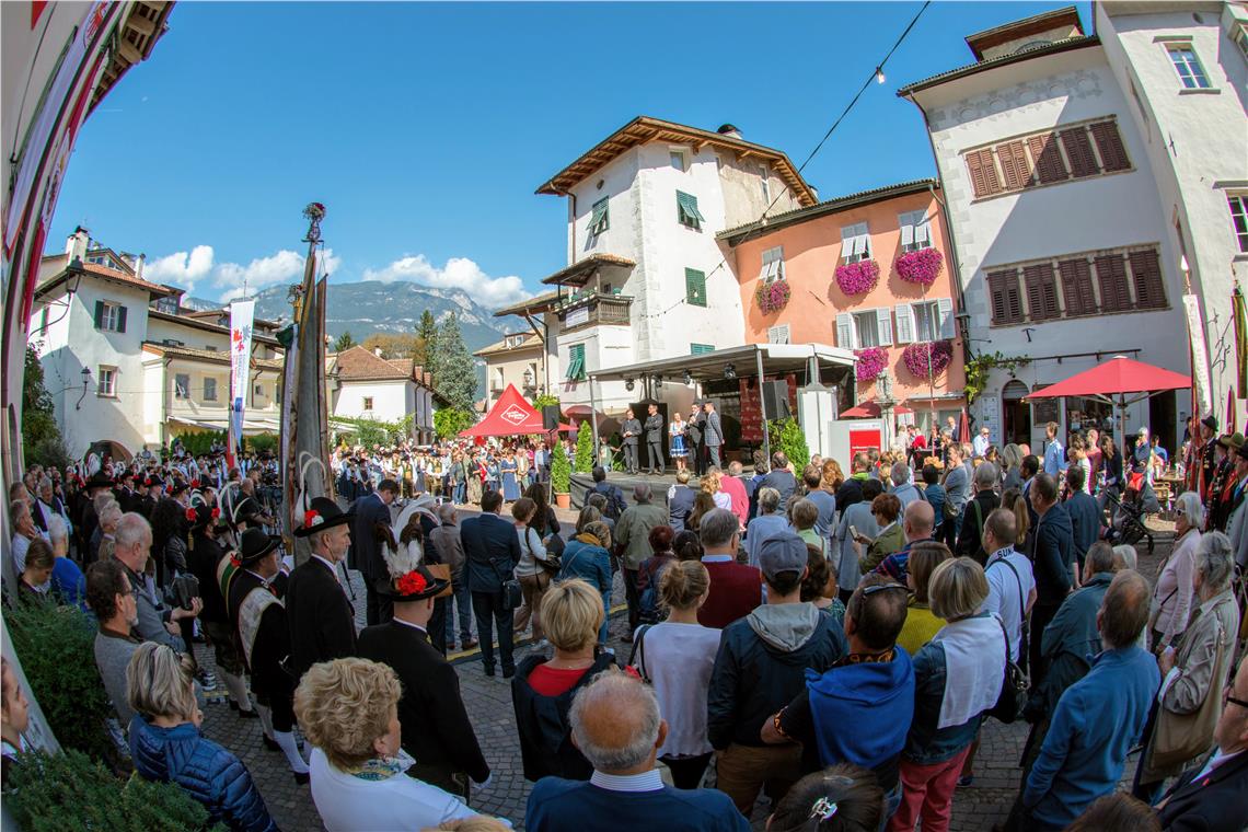 Anche il capitano tirolese Günther Platter ha sottolineato il valore della tradizione, che deve condurre al futuro: "Cento anni dopo la divisione del nostro territorio, dobbiamo fare tutto il possibile far sentire di nuovo unite le persone. Ciò richiede anche progetti concreti e questo festival ne è un perfetto esempio". Il presidente trentino Maurizio Fugatti ha parlato di "una storia comune che si riflette nel presente di oggi e conduce con uno spirito di unità nel futuro". Le tre diverse realtà del Trentino, dell'Alto Adige e del Tirolo trovano la loro unità nell'Euregio: "Questo è il suo grande valore" ha detto Fugatti. Tutti e tre i presidenti hanno sottolineato quanto siano concreti i problemi e le preoccupazioni che le tre regioni hanno in comune: combattere il cambiamento climatico, ridurre il traffico di transito, prevenire catastrofi naturali sono solo alcuni esempi. Ma anche dare risposte alle famiglie e ai giovani, coordinare le attività di ricerca e sviluppo e molto altro. E per il futuro, hanno annunciato Komptascher e Platter, arriverà un abbonamento congiunto per il trasporto pubblico. Il sindaco di Egna, Horst Pichler, lo ha definito un "raro onore dare il benvenuto a tre presidenti contemporaneamente, insieme a molti visitatori provenienti da tutta l'Euregio". Il sindaco fatto riferimento al ricco programma, a cui partecipano circa 20 associazioni, 50 spazi espositivi e molti artisti e musicisti. All'inizio della cerimonia una compagnia di Schützen ha anche consegnato personalmente ai tre presidenti una risoluzione con le proprie richieste.