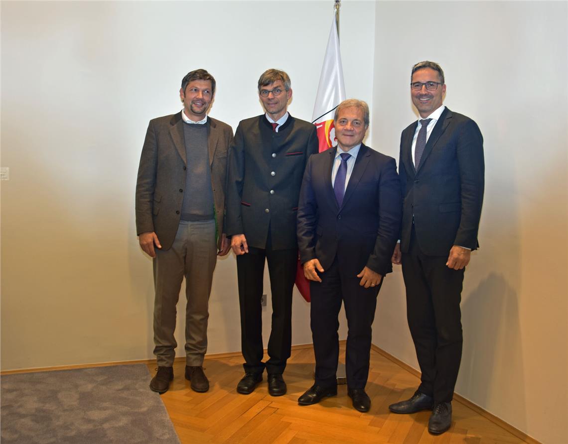 I nuovi membri del consiglio di gestione della BBT SE, Gilberto Cardola e Martin Gradnitzer, hanno fatto visita al presidente Kompatscher e all'assessore Alfreider.