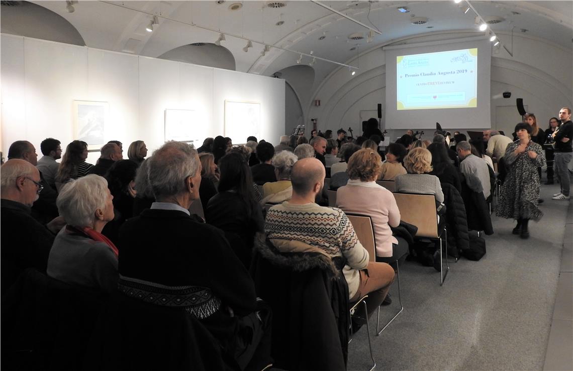 Sono state 35 le tesi di laurea presentate e premiate in occasione della serata al Trevi, per quella che è nata come una sfida ambiziosa: reperire del materiale documentaristico per integrare le fonti da mettere a disposizione degli studiosi. Questi i premiati dell’edizione 2019 del premio "Claudia Augusta": Michele Oss Emer, Marisa Nastati, Esmiralda Halilaj, Gaetano D’Ambrosio, Sergio Ragnoli, Gaia Palmisano, Enzo Ianes, Marco Cozzi, Caterina Biasin, Cecilia Frego, Davide Leveghi, Luca Tait, Chiara Zandonai, Paolo Del Favero, Alessandro Ferraresi, Luisa Bortolotti, Liliana Prandini, Michela La Spisa, Olga Pavan, Nicole Marinaro, Alex Battocletti, Edoardo Giuriato, Domenico Gueli, Alessia Rattin, Simone Branchinella, Martina Borin, Paolo Gerace, Luca Criscuolo, Caterina Fantoni, Nina Grohmann, Miriam Furlan, Diana Teaca Ioana, Emanuela Teaca Anca e Sara Alberti.
