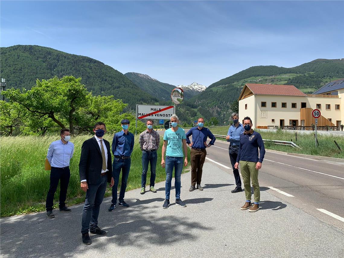 Sopralluogo dell'assessore Alfreider e dei tecnici in vista della partenza dei lavori per il sottopasso di Malles il 3 giugno.