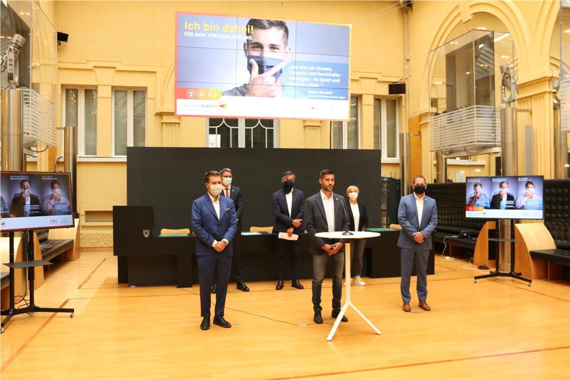 Proprio in questo momento è importante, ricordano i testimonial, attenersi alle regole di prevenzione del contagio, ma per motivi che possono essere anche molto diversi fra loro, come hanno spiegato oggi (11 giugno) in una conferenza stampa a Palazzo Widmann cui hanno preso parte il presidente della Provincia Arno Kompatscher, l'assessore alla sanità Thomas Widmann e la direttrice tecnico-assistenziale dell'Azienda Sanitaria Marianne Siller. Così il capitano dell'HCB Alto Adige Alperia Anton Bernard ha spiegato: "Gli obiettivi si raggiungono con impegno, disciplina e costanza: nello sport e nella vita". Hannes Mussak, presidente di Economia Alto Adige, ha sottolineato seguire insieme questa strada sia indispensabile "perché così l'Alto Adige avrà un futuro migliore". Infine, l'event manager Michael Miki Picarella ha condiviso una riflessione sul futuro del suo settore: "Fiere ed eventi pubblici cambieranno radicalmente. Ma se ci atteniamo alle regole, possiamo guardare avanti con fiducia".