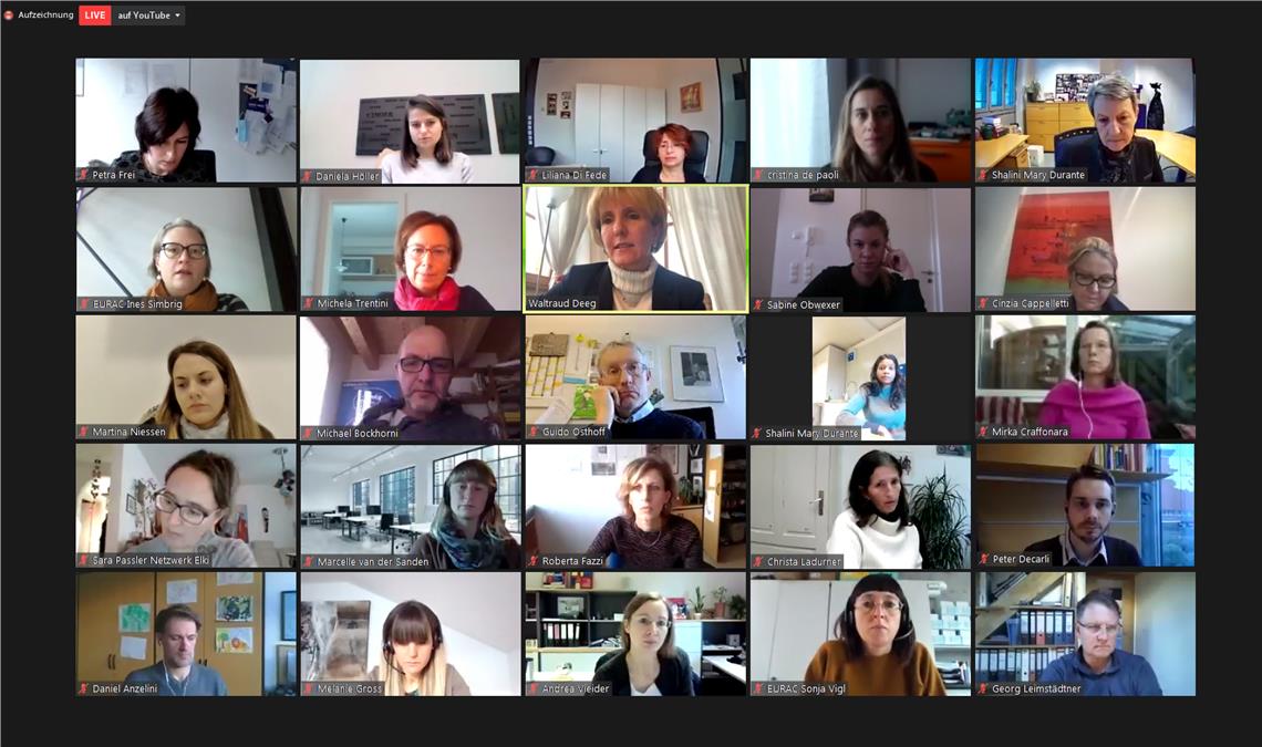 Esperte ed esperti in ambito sociale si sono scambiati oggi in videoconferenza informazioni sulle sfide future e sulle strategie da adottare per quanto riguarda la tutela dei minori. Con il supporto scientifico di Eurac Research, gli aspetti della prevenzione, del personale e delle offerte in materia di protezione dell'infanzia e della gioventù sono stati discussi in quattro tavoli tematici digitali. "Una politica sociale sostenibile deve tenere conto delle esigenze delle generazioni future", ha affermato l’assessora e vicepresidente Waltraud Deeg. Per questo il settore della tutela dei bambini e dei giovani costituisce una parte importante del piano sociale provinciale attualmente in fase di elaborazione. “Il documento sarà elaborato con un processo partecipativo nel corso di quest'anno e del prossimo e, come strumento di pianificazione a lungo termine, indicherà la direzione delle politiche sociali dell'Alto Adige”, ha sottolineato Michela Trentini, direttrice della ripartizione sociale.