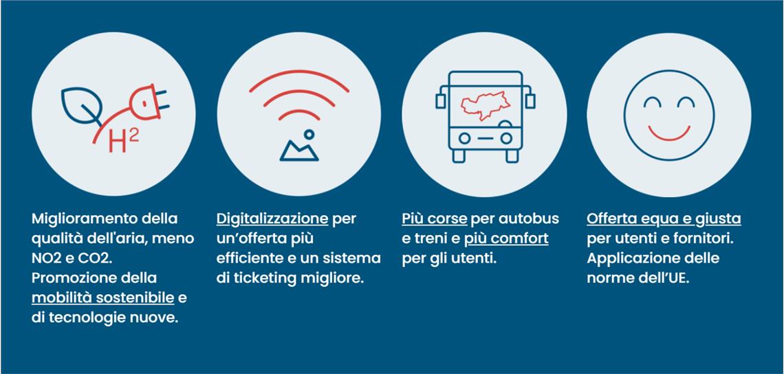 I servizi da aggiudicare secondo la nuova modalità dovrebbero partire nell'autunno 2021. Circa 125.000 persone viaggiano già ogni giorno in autobus in Alto Adige. "Secondo il piano della mobilità, gli attuali 34 milioni di chilometri percorsi ogni anno in autobus andranno ulteriormente aumentati", sottolinea Alfreider. Secondo l’assessore, sarà importante fornire "più opzioni di viaggio, più comfort fino all'ultimo metro, una gamma di servizi smart ed efficiente con comunicazione in tempo reale e un sistema di biglietteria migliorato e ancora più improntato alla digitalizzazione. Nel complesso, l'obiettivo è ridurre le emissioni di anidride carbonica attraverso mezzi ancora più efficienti", sottolinea l’assessore. Attualmente, circa la metà degli altoatesini utilizza ancora la propria auto. "Entro il 2030, due terzi di tutti i viaggi dovrebbero avvenire in bicicletta, con i mezzi pubblici o a piedi - conclude Alfreider - e ci auguriamo una grande adesione da parte dei cittadini. Per poter svolgere questo servizio con la soddisfazione di tutti in futuro avremo bisogno di partner professionali e affidabili".