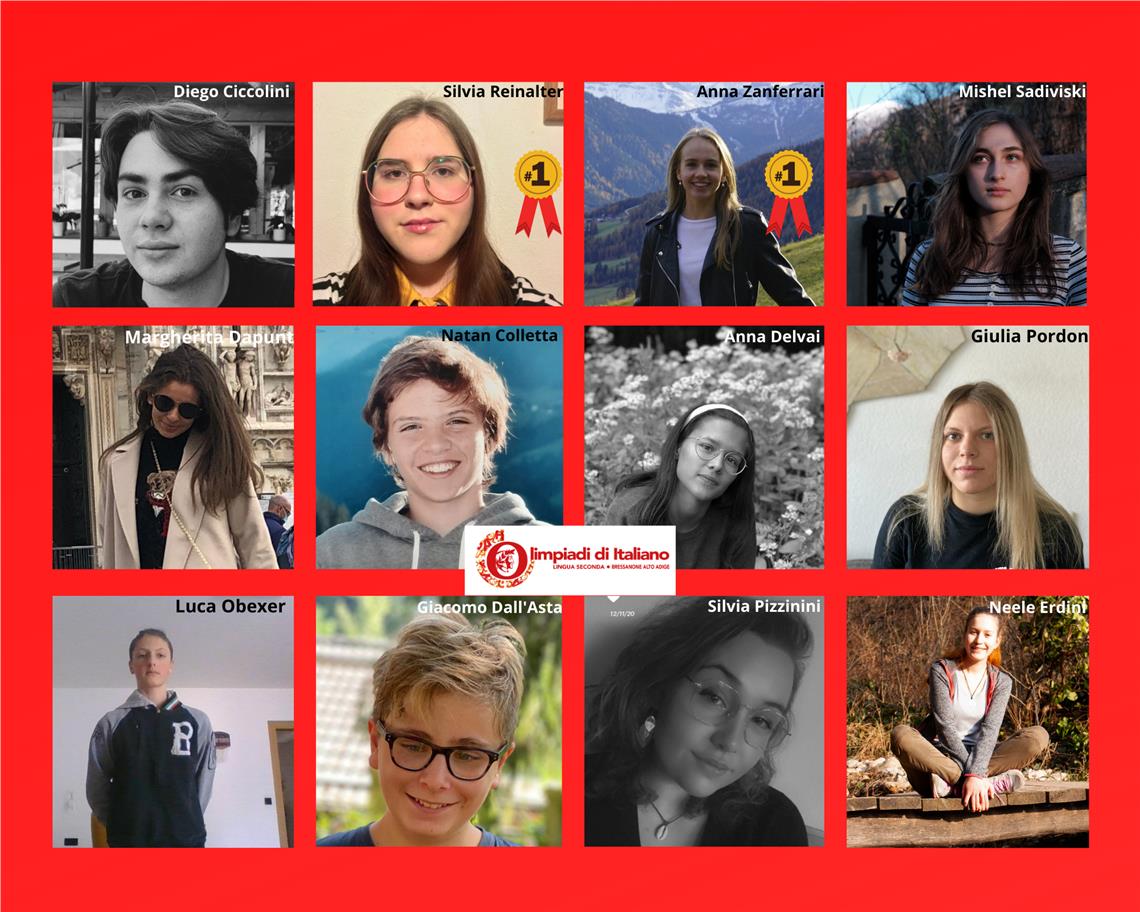 La settima edizione delle Olimpiadi di italiano L2 - Alto Adige si è conclusa nei giorni scorsi proprio nel giorno del Dantedì, il giorno in cui si ricorda la figura del grande poeta Dante Alighieri. La premiazione, che così come la finale provinciale del 3 marzo, si è svolta in remoto, ha rivelato i nomi dei primi 3 primi classificati assoluti Junior e Senior e dei 6 vincitori dei 3 indirizzi di scuole Liceo, istituti tecnici e scuole professionali, Junior e Senior. Sul gradino più alto sono salite quest'anno due studentesse del Liceo linguistico e scientifico Cusanus di Brunico, Silvia Reinalter (Junior) e Anna Zanferrari (Senior). Alle loro spalle nella categoria Junior si sono classificati al 2° posto Natan Colletta del Liceo linguistico e delle scienze umane di La Villa seguito da Giacomo Dall'Asta dell'Istituto tecnologico Max Valier di Bolzano. Anna Delvai, Liceo delle scienze umane di Bolzano e Lucia Pizzini, del liceo linguistico e delle scienze umane di La Villa, rispettivamente al 2° e al 3° posto, hanno completato il podio della categoria Senior.