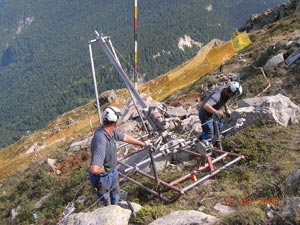 Rappresentanti dei due comuni interessati - oltre a Tesimo Senale San Felice - con i sindaci Thomas Knoll e Waltraud Kofler hanno compiuto un sopralluogo con i responsabili dell'Ufficio provinciale Sistemazione bacini montani sud nella zona sottostante, dove i tecnici provinciali sono al lavoro per la posa di circa mille metri di reti paraneve. In tre tappe i versanti verranno messi in sicurezza con 416, poi 339 e infine 267 metri di rete che presenta un'altezza di 4,5 metri. Si è scelta questa opzione in quanto il terreno friabile non è adatto ad un'operazione di rimboschimento.