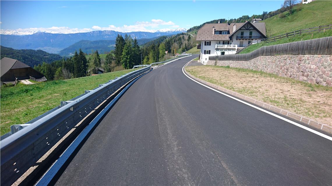 “Gli utenti della strada la possono ora percorrere in maggior sicurezza; il tracciato è stato leggermente spostato e la sua larghezza portata a 5 metri. Sono stati installati guard-rail e nuovi muri di sostegno sul lato a valle del tracciato” riassume l’assessore provinciale alle infrastrutture Daniel Alfreider. Nei lavori di messa in sicurezza eseguiti dalla ditta Rottensteiner Heinrich di Collalbo.
