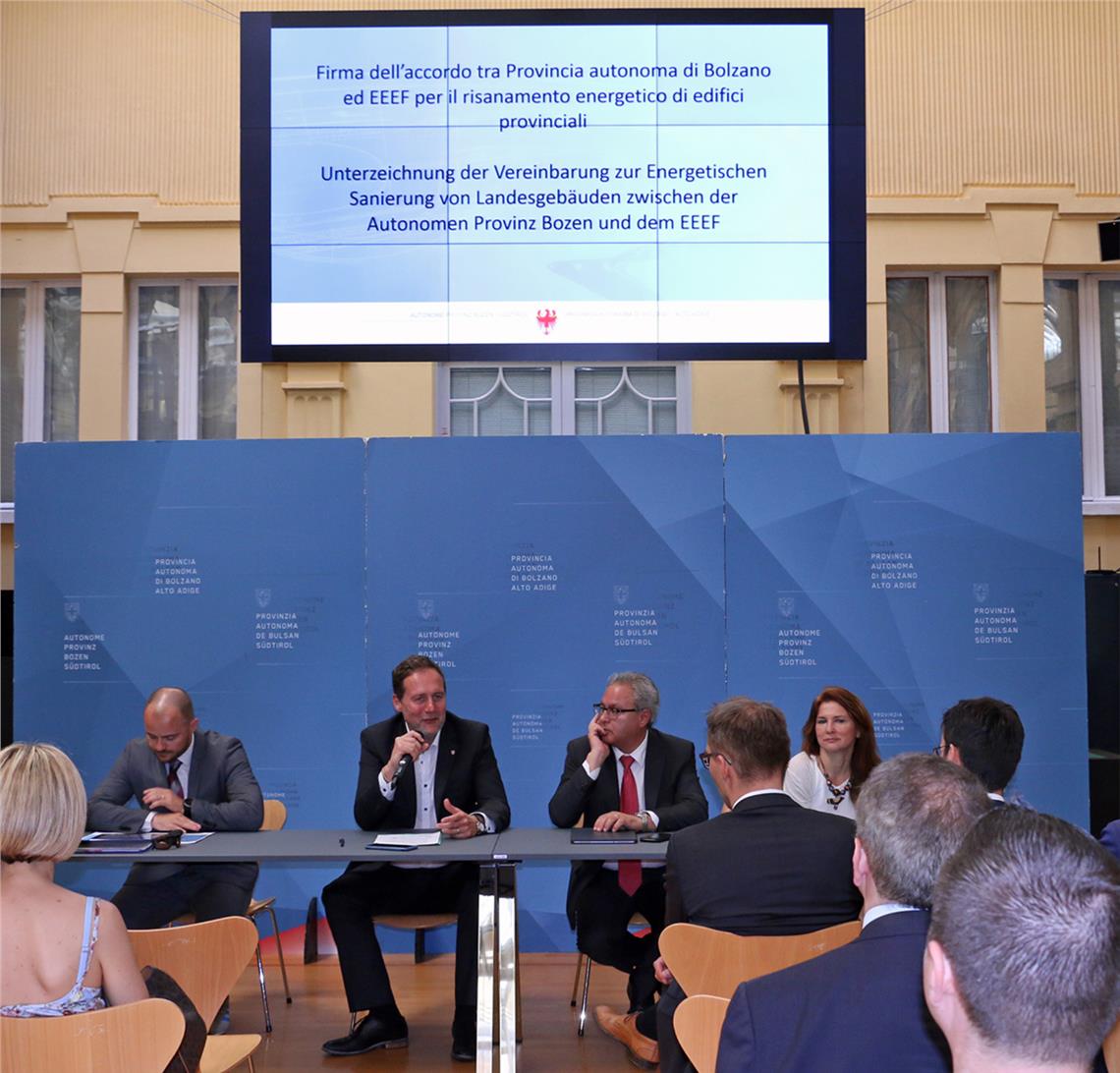 Alexander Gallmetzer da parte sua ha evidenziato il coinvolgimento della sua struttura nel proporre, in stretta collaborazione con la Provincia, "soluzioni finanziarie innovative per lo sviluppo economico dell’intero territorio che potranno essere messe a disposizione anche di altri enti per ulteriori progetti". Con la sottoscrizione del contratto con eeef è stata avviata la prima fase volta a valorizzare le risorse esistenti a livello locale ed europeo. Le professionalità coinvolte saranno coordinate dalla Provincia che potrà attingere alle risorse finanziarie messe a disposizione dalla Commissione Europea, tramite il fondo eeef. Quando gli studi e gli audit saranno conclusi prenderà il via la seconda fase con la selezione di operatori economici specializzati per la realizzazione e gestione di investimenti stimati pari a 40 milioni di euro. In questa fase si prevede la partecipazione dello stesso fondo eeef che potrà supportare finanziariamente (dai 5 ai 20 milioni di euro) gli interventi tramite strumenti finanziari ad hoc, sottoscrizione di project bond e immissione di capitale. Inoltre, grazie a PensPlan Invest Sgr, si prevede la possibilità di attirare ulteriori investitori nel progetto al fine di massimizzare i benefici per la Provincia e così facilitare la selezione delle migliori imprese anche di piccole-medie dimensioni. L’ultima fase prevede l’estensione del programma a ulteriori edifici della Provincia e dei Comuni.