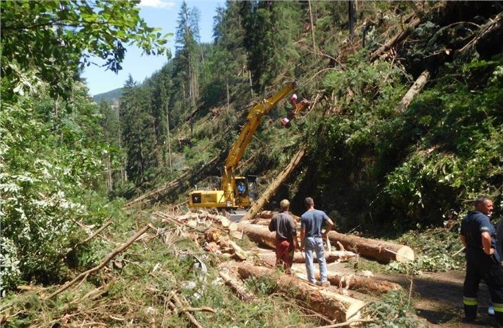 Continuano lungo la strada per passo Lavazè (SS 620) i lavori per ripulire le pareti rocciose in seguito alle cadute di alberi e agli smottamenti dovuti al maltempo del weekend scorso. Due imprese incaricate dal Servizio strade provinciale procedono all’installazione di reti paramassi su un'area di 1.000 metri quadrati. Anche i proprietari dei boschi sono al lavoro per rimuovere gli alberi caduti.