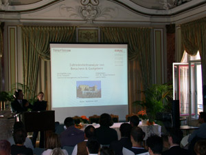 Die Museumsbesucher waren im Herbst 2004 und Frühjahr 2005 befragt worden. Im Frühjahr wurden– in Zusammenarbeit mit den Tourismusverbänden Meran-Tirol-Algund und Meraner Land – zudem Fragebögen an die Gastwirte im Burggrafenamt versandt. Insgesamt beteiligten sich 600 Museumsbesucher und 104 Gastgeber an dieser Fragebogenaktion. Der typische Besucher des Touriseums ist demnach zu 50,7 Prozent weiblich und zu 49,3 Prozent männlich. Er ist im Durchschnitt 52,5 Jahre alt und zu 57 Prozent Gast im Burggrafenamt. Er kommt zu 46,7 Prozent aus Deutschland und ist zu 39,3 Angestellter. Grund für den Besuch des Touriseums ist zu 27 Prozent ein persönliches Interesse. 41,7 Prozent der befragten Gäste gaben an mit der Familie das Touriseum zu besuchen.