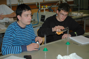 Getreu den Grundsätzen der Fachschule Laimburg, theoretisches Wissen mit praktischer Anwendung zu verbinden, wurden die Inhalte des Praktikums sowohl auf dem Papier als auch im Labor durchgekaut. So wurde in letzterem geübt, wie die Gesamtsäure mittels unterschiedlicher Laborverfahren gemessen werden kann, wobei hier besonderer Wert auf jene Verfahren gelegt wurde, die auch im Betrieb ohne Probleme angewendet werden können. Parallel dazu wurden mehrere Entsäuerungsproben durchgeführt, um einen Wein, dessen Gesamtsäure vorher verändert wurde, geschmacklich zu harmonisieren. In entsprechenden Verkostungen konnten die Schüler die Veränderungen schließlich geschmacklich nachvollziehen, die Säure überprüfen und entsprechende Reihungen vornehmen.
