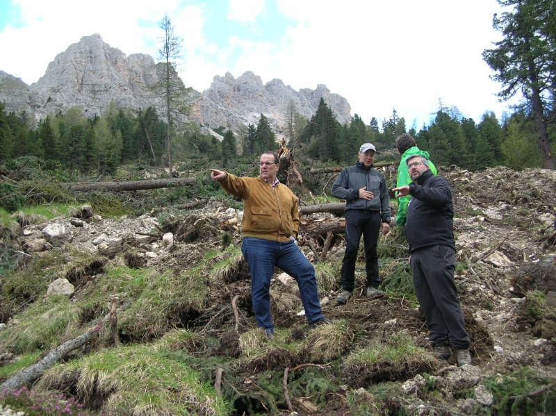 Landesrat Pichler Rolle machte sich zusammen mit Bürgermeister Peter Mussner, Verwaltungsrat Franz Perathoner, Adriano Oggiano vom Landesamt für Landschaftsschutz, dem Vize-Kommandanten der Freiwilligen Feuerwehr Wolkenstein Anton Mussner und dem Geschäftsführer der Danterceppies AG Giovanni Pasti ein Bild der aktuellen Lage und ließ sich aus erster Hand über den Stand der Dinge informieren. "Es muss gelingen", zeigte sich Landesrat Pichler Rolle optimistisch, "die notwendigen Verwaltungsverfahren in Rekordzeit über die Bühne zu bringen. Dies ist aufgrund der außergewöhnlichen Situation unbedingt notwendig. Das ursprüngliche Projekt hatte ja bereits alle Genehmigungen und war schon im Bau, als diese gewaltige Mure der Betreibergesellschaft in die Quere kam. Nun müssen die Planung, die Genehmigung und die Umsetzung schnellst möglich vonstatten gehen. Dafür gibt es einen straffen Zeitplan, an dessen Umsetzung Land, Gemeinde und Betreiber bereits Hand in Hand arbeiten. Wir werden alles daran setzen in diesem engen Zeitplan zu bleiben. Ich denke wir werden das schaffen, aber erhebliche gemeinsame Anstrengungen sind dafür nötig".