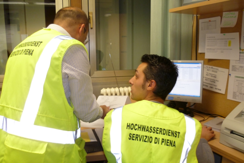 Bereits seit Jahren probt die Landesabteilung Wasserschutzbauten gemeinsam mit der Landesabteilung Brand- und Zivilschutz, der Berufsfeuerwehr, dem Hydrographischen Landesamt, dem Regierungskommissariat, den Ordnungskräften und den Freiwilligen Feuerwehren im Rahmen einer Hochwasserübung den Ernstfall an Etsch und Eisack. Am Freitag (15. November) war es wieder soweit: Nachdem die Pegelstände an Etsch und Eisack fiktiv die Vorwarnstufe erreicht hatten, wurden die Hochwasserzentrale der Landesabteilung Wasserschutzbauten, das Lagezentrum der Berufsfeuerwehr, die Bezirkseinsatzzentralen Meran, Vilpian, Neumarkt und Brixen sowie die Pegelmessstellen an den beiden Flüssen besetzt. Dabei gingen die Verantwortlichen strikt nach dem Alarm- und Einsatzplan vor. "Die Informationskette hat einwandfrei funktioniert," sagt Rudolf Pollinger, Direktor der Landesabteilung Wasserschutzbauten, der am Freitagabend als Beobachter im Einsatz war. Für die Landeseinsatzleitung während der Übung zeichnete Peter Egger verantwortlich.