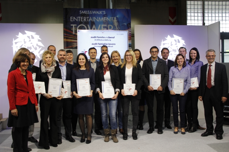Fünf Südtiroler Unternehmen haben heute (19.11.15) bei der Herbstmesse für ihre familienfreundlichen Arbeitsmodelle das Zertifikat "audit familieundberuf" erhalten. "Ob im Teeverkauf oder im Energiebereich - Lösungen zur besseren Vereinbarkeit von Familie und Beruf sind für Mitarbeiter und Betrieb gleichermaßen gewinnbringend", sagte Familienlandesrätin Deeg bei der Zertifikatsverleihung.