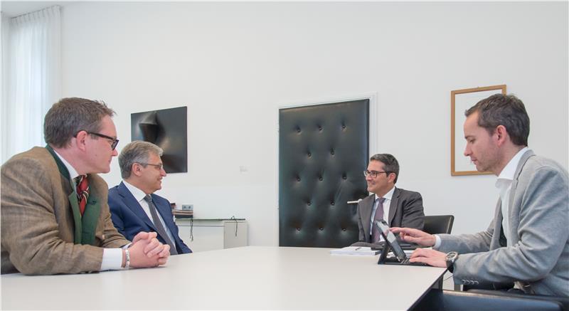 Die wirtschaftlichen Beziehungen zwischen Österreich und Italien mit besonderem Blick auf Südtirol standen im Mittelpunkt des heutigen Besuchs des scheidenden österreichischen Wirtschaftsdelegierten Michael Berger bei Südtirols Landeshauptmann Arno Kompatscher. Was die Handelsbeziehungen zu Italien angeht, berichtete der österreichische Wirtschaftdelegierte Berger von leichten Zuwächsen sowohl im Export, als auch im Import. Das Vorkrisenniveau sei allerdings noch nicht erreicht. Derzeit beläuft sich das Exportvolumen auf 8, 2 Milliarden Euro, die Importe liegen bei acht Milliarden Euro. Erfreulich entwickelte sich der Dienstleistungsaustausch, so Berger. „Österreich exportiert mittlerweile mehr in die USA als ins Nachbarland Italien. Italien ist somit Österreichs zweitwichtigster Handelspartner“, so Berger.