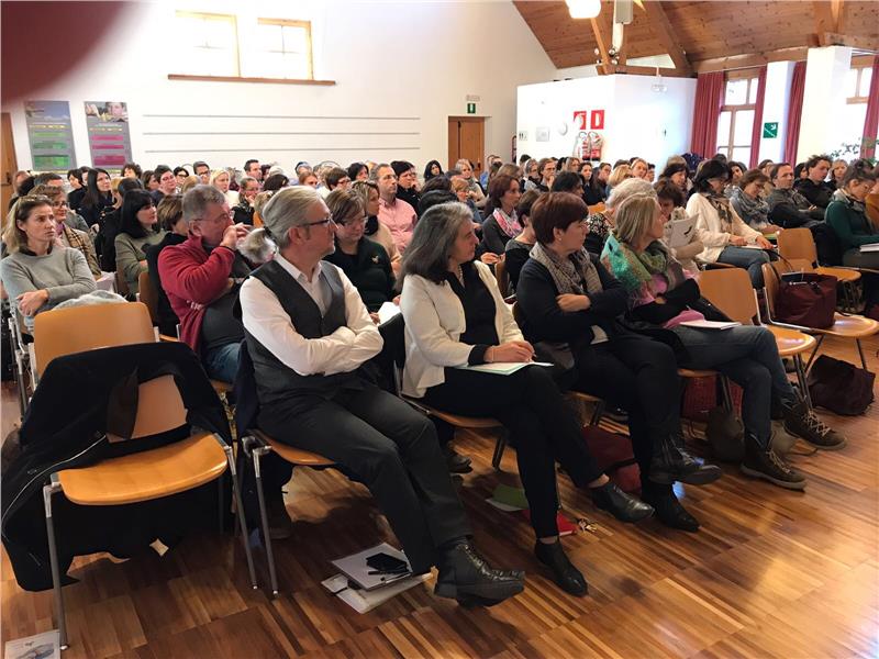 "Mutig führen, lebendig lernen. Die Herausforderung Schule und Gesundheitswesen human und gesundheitsförderlich zu gestalten" war hingegen das Thema der gestrigen (16. November 2017) Herbsttagung zur Gesundheitsförderung an der Fachschule für Hauswirtschaft und Ernährung Dietenheim bei Bruneck. Rund hundert Mitarbeitende aus Kindergarten, Schule und Gesundheitswesen nahmen an der vom Pädagogischen Beratungszentrum Bruneck, dem Psychologischen Dienst des Gesundheitsbezirks Bruneck, der Fachschule für Hauswirtschaft und Ernährung und dem Schulverbund Pustertal veranstalteten Tagung teil.