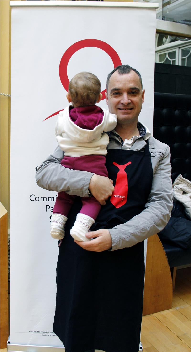 Frauen erhalten bei gleicher Qualifikation für dieselbe Arbeit noch immer 17 Prozent weniger Lohn als Männer. "Das führt nicht nur dazu, dass sich Frauen, die im Erwerbsleben sind, weniger leisten können als Männer, die Lohnungleichheit hat auch zur Folge, dass Frauen wesentlich weniger Rente erhalten als Männer", erklärte Beiratspräsidentin Ulrike Oberhammer anlässlich der Vorstellung des Programms für den Aktionstag 2018 heute (13. April). "Frauen erhalten auch deshalb wesentlich niedrigere Pensionen als Männer, weil sie ihre Arbeitsleben viel öfter unterbrechen – etwa für die Kindererziehung oder weil sie Angehörige pflegen. All dies führt dazu, dass sie ein höheres Risiko für Altersarmut tragen", so Oberhammer. "Im Vergleich zu Männern bekommen Frauen geradezu lächerliche Pensionen", sagte auch die Vizepräsidentin des Beirats, Franca Toffol. Auch deshalb hat sich der Landesbeirat dazu entschieden, in diesem Jahr nicht mehr die Bügelkünste der Männer zu testen und einen "Ironman" zu ermitteln, sondern einen "Gentleman" auszuzeichnen, einen Mann, der sich aktiv in die Familienarbeit einbringt, erklärte Beiratspräsidentin Ulrike Oberhammer anlässlich der Vorstellung des Programms für den Aktionstag 2018 heute (13. April). Der erste Gentleman heißt Peter Ratschiller, ist Projektmanager in der Landesabteilung Informatik und derzeit Vollzeitpapi der kleinen Annika. "Meine Entscheidung ist durchwegs positiv aufgenommen worden", erklärte Ratschiller, "in meinen Umfeld bin ich auch nicht der erste Vater, der die Elternzeit in Anspruch nimmt. Ich glaube das wird immer mehr zur Normalität."