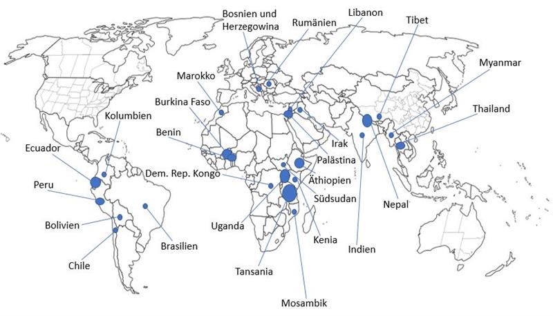 Anhang: Weltkarte und genaue Gliederung der Projekte nach Ländern