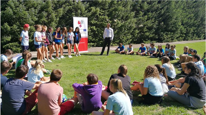 Auch Projektleiter Matthias Fink hat dem Summer Camp im Grand Hotel Toblach einen Besuch abgestattet und die Kinder in die Geschichte und Projekte der Europaregion eingeführt: "Die Euregio braucht die Jugend, die bereit ist, sie mit Leben zu erfüllen und zu gestalten. Das Summer-Camp beweist, dass es dank der Euregio gelingen kann, durch kontinuierlichen Austausch Grenzen zu überwinden."