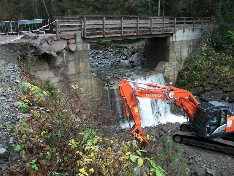 Nach den heftigen Unwettern Ende Oktober ist auch im Tinnetal ein Einsatz notwendig. Vorarbeiter Hubert Rungger und sein Bautrupp sind derzeit dabei, unterspülte Uferverbauungen am Nockbach wieder instandzusetzen und beschädigte Querwerke zu sanieren. "Im Bereich der Widerlager an den Brücken über den Nockbach muss auch der Uferschutz wieder aufgebaut werden", erklärt Bauleiter Vettori. (Widerlager sind Bauteile am Übergang von der Brückenkonstruktion zum anschließenden Erddamm.)