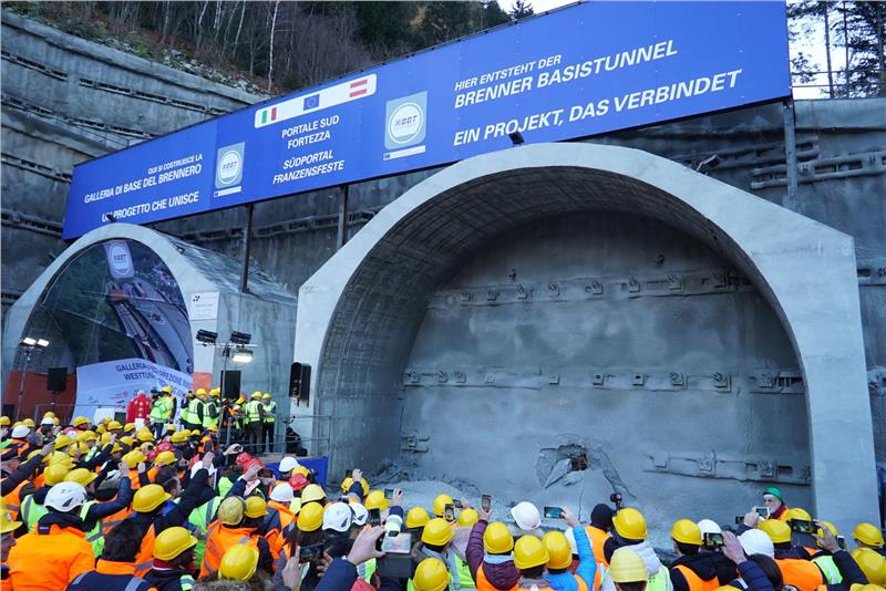 "Der Brennerbasistunnel ist ein Jahrhundertprojekt, ein Umweltprojekt und soll die Lebensqualität für die Menschen entlang der Brennerachse verbessern, die Umwelt schützen und die Straßeninfrastruktur entlasten – diesen Zielen sind wir nun einen weiteren Schritt nähergekommen", betonte Landeshauptmann Arno Kompatscher heute (4. Dezember) auf der BBT-Baustelle in Franzensfeste. Pünktlich zur Barbarafeier der Tunnelarbeiter erfolgte heute der Durchstich des Südportals für den 55 Kilometer langen Tunnel, für den der Landeshauptmann selbst das Startsignal gab. "Derzeit laufen zwei Drittel des Güterverkehrs mit rund 40 Millionen Nettotonnen Frachtgut auf der Brennerroute über die Straße und nur ein Drittel über die Schiene – wenn der Brennerbasistunnel fertig gebaut ist, wird sich dieses Verhältnis umkehren und auch Personenzüge können dann durch den BBT fahren", betonte Kompatscher und verwies auch auf die Bedeutung des BBT als verbindendes Element der Länder in Europa.