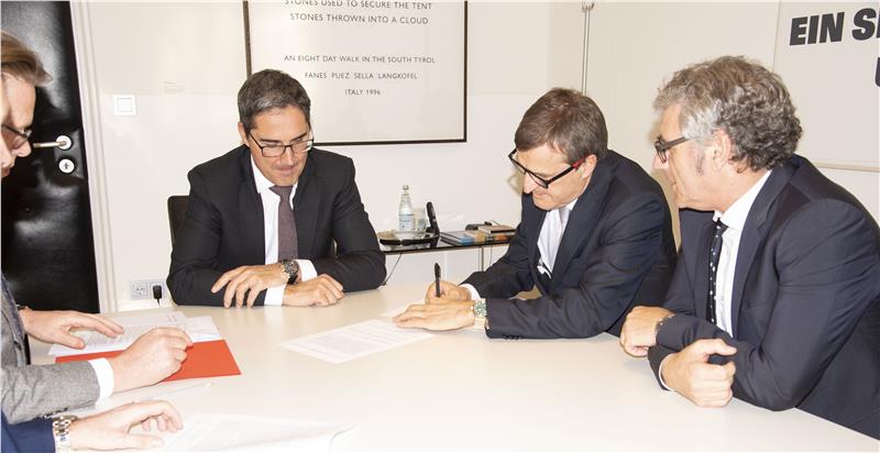 "Wir werden wohl künftig nicht mehr von der Landesenergiegesellschaft Alperia, sondern von der Gemeindenenergiegesellschaft sprechen", brachte Landeshauptmann Arno Kompatscher die Bedeutung der Vertragsunterzeichnung auf den Punkt, die heute Mittag (6. Dezember) im Landhaus 1 in Bozen vorgenommen wurde. Landeshauptmann Kompatscher und Selfin-Präsident Sebastian Helfer unterzeichneten den Kaufvertrag, mit dem das Land 8,07 Prozent der Alperia-Aktien um 78,6 Millionen Euro an die Energiegesellschaft Selfin abtritt. Südtirols Gemeinden halten nach der heutigen Unterzeichnung des Kaufvertrags mit dem Land die Mehrheit der Alperia-Aktien.